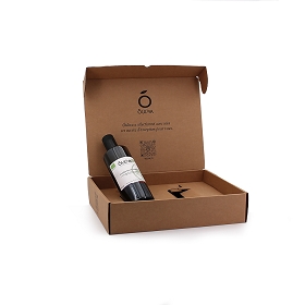 Ce coffret en carton kraft micro-cannelure associe sobriété, solidité et flexibilité, permettant de composer facilement des coffrets de 2 ou 3 bouteilles d’huile d’olive avec une seule structure mais un système de calages differents.