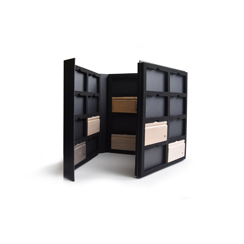 Un classeur nuancier sobre et structuré, pensé pour sublimer les teintes bois et accompagner la vente de meubles sur mesure avec une présentation aussi qualitative que le produit final. A partir de 300 ex.